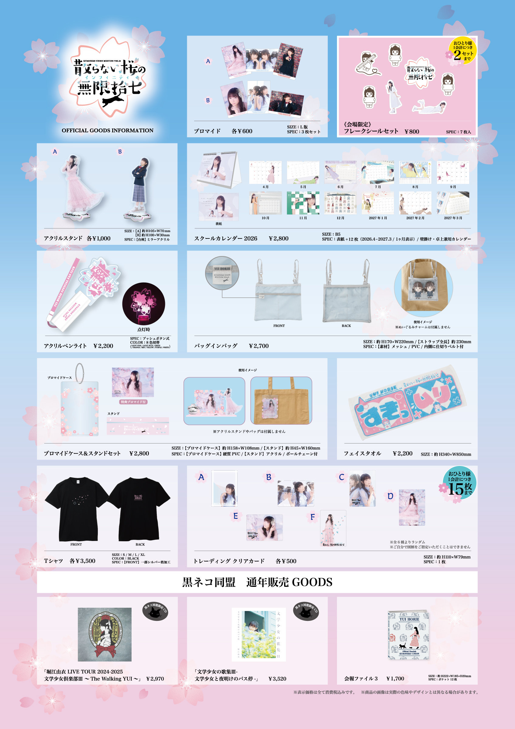 ファンクラブイベント「黒ネコ集会Vol.24 ~散らない桜の無限拾七(インフィニティ)~」イベント会場にてグッズの当日販売を実施いたします。